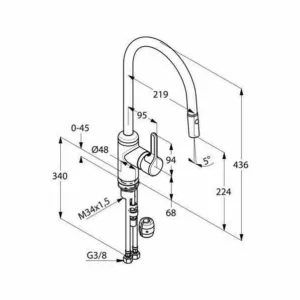 - Două funcții: jet puternic pentru umplerea rapidă a recipientelor și duș pentru spălarea delicată a legumelor